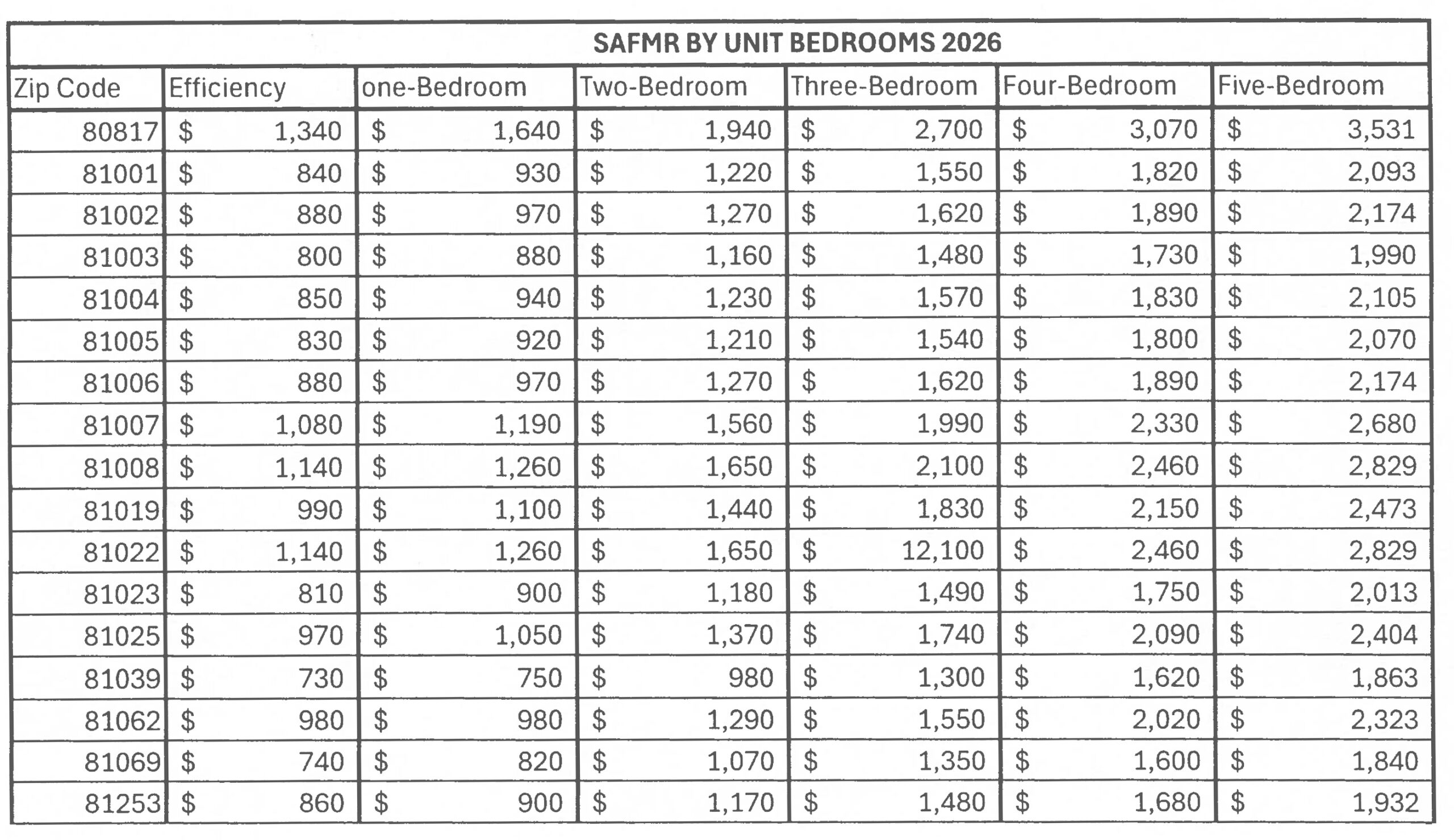 Effective October 1, 2020, the Housing Authority of the City of Pueblo Board of Directors has approved the use of Small Area Fair Market Rent (SAFMR) for our Payment Standards. In metropolitan areas, HUD defines Small Areas using ZIP Codes within the metropolitan area. Using ZIP codes as the basis for FMRs provides tenants with greater ability to move into “Opportunity Neighborhoods” with jobs, public transportation, and good schools. They also provide for multiple payment standards within a metropolitan area, and they are likely to reduce need for extensive market area rent reasonableness studies. Lastly, HUD hopes that setting FMRs for each ZIP code will reduce overpayment in lower-rent areas.